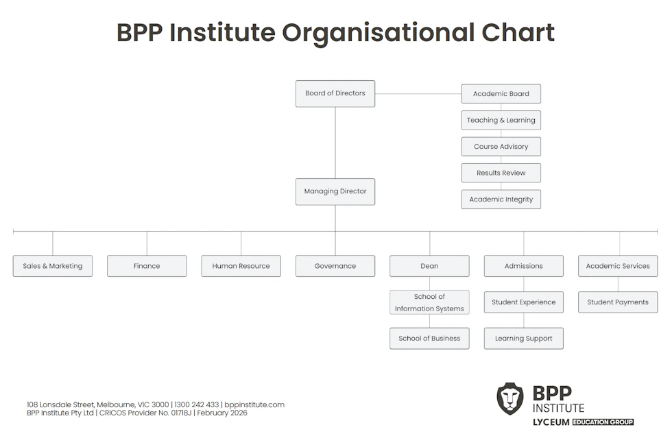 The Academic Board is BPP Institute's highest academic authority. The Board ensures that every BPP Institute student can pursue their qualification with clarity, confidence, and the highest academic standards behind them.